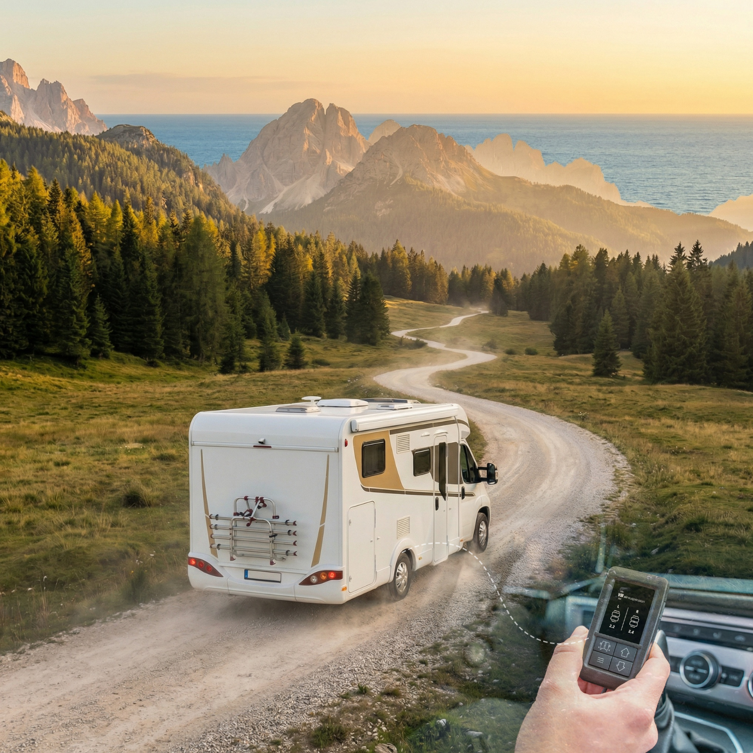 VB-SemiAir adds adjustable air assistance to the rear suspension, helping your motorhome or campervan cope with varying loads. As weight increases, air pressure provides additional support — improving ride comfort and reducing rear sag.